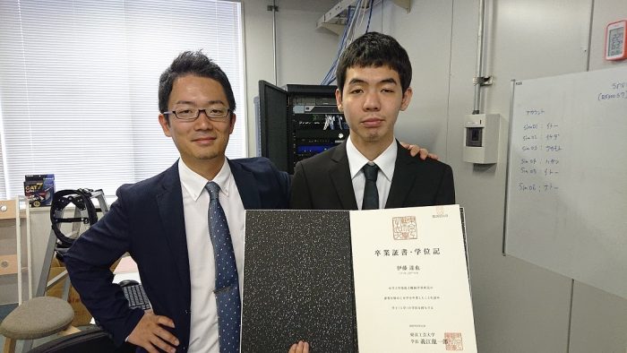 イベント 2019年度 東京工芸大学 前期 学位授与式が執り行われました Posted on 2019年9月12日 by webmaster 2019年9月12日東京工芸大学厚木キャンパスにて工学部の前期学位授与式が執り行われ,当研究室からは学部4年生の伊藤達也君が学士(工学)の学位を授与されました.おめでとうございます! 社会に羽ばたいてからも,精一杯頑張ってください!!!! webmaster webmaster の投稿をすべて表示